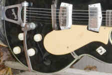 black finish, pitting to chrome of tailpiece, pickup cover dull, some